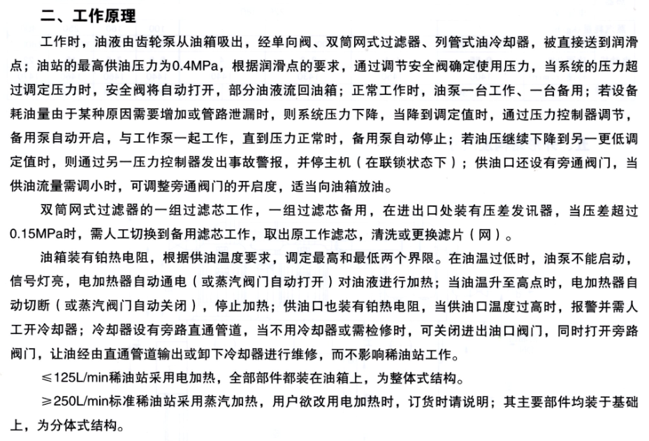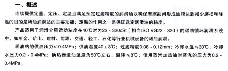 本产品适用于冶金、重型、矿山等机械设备稀油系统中,润滑设备其工作介质粘度等级为N22~N460(相当于ISOVG22-460)的工业润滑油,冷却装置采用列管式油冷却器。