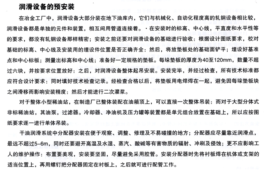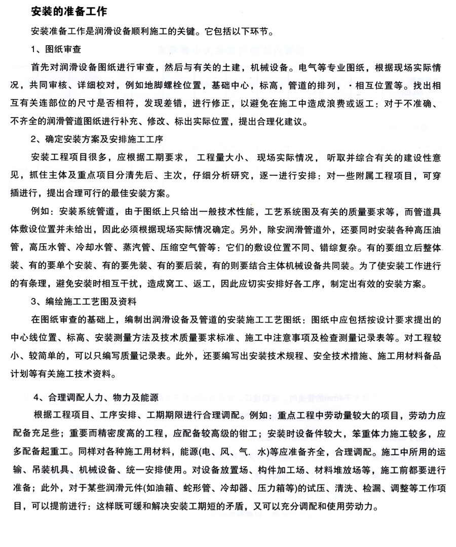 安装准备工作是润滑设备顺利施工的关键。它包括以下环节