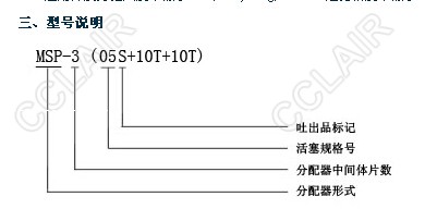 MSP※型分配器适用于单线润滑系统中,作为一种计量给油装置,它靠分配器体内部的活塞将由入口输入的润滑油以预定的量可靠地和强制性的依次分配到分配器各出油口:该分配器由一片供给体、n片中间体、一片端部体组成,中间体的数量可根据所需出油口的数量来确定(至少3片,最多8件)